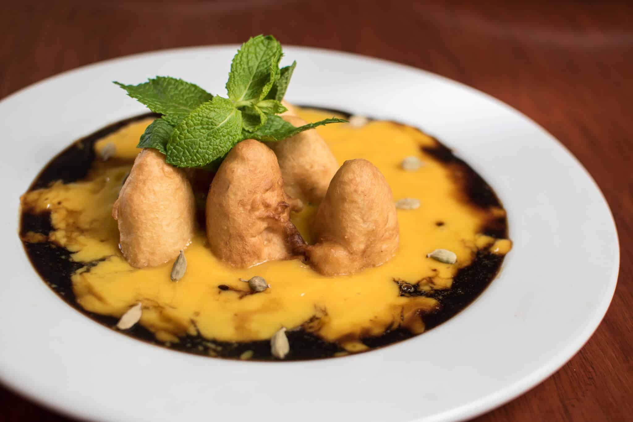 BUÑUELOS DE BANANAS EN SALSA DE MANGOS