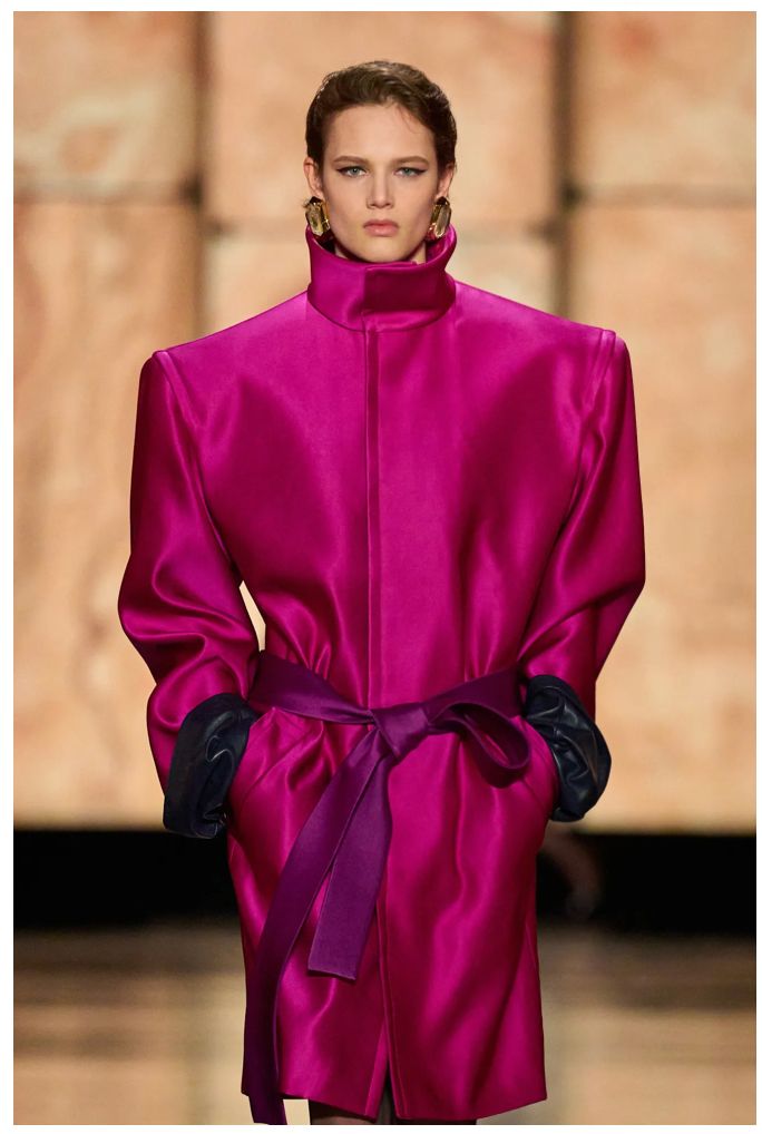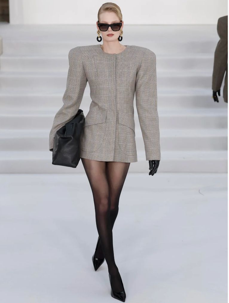 Las pasarelas fueron una verdadera oda a los años ochenta, una década que vuelve a inspirar siluetas poderosas y una estética marcada por la estructura y la presencia. En este contexto reaparece el power dressing, con hombros marcados, líneas arquitectónicas y prendas que construyen una figura fuerte y sofisticada. Blazers estructurados, cinturones que enfatizan la cintura y abrigos de proporciones definidas dominan el guardarropa invernal, reinterpretando el espíritu de poder y elegancia de aquella década con una mirada contemporánea.
