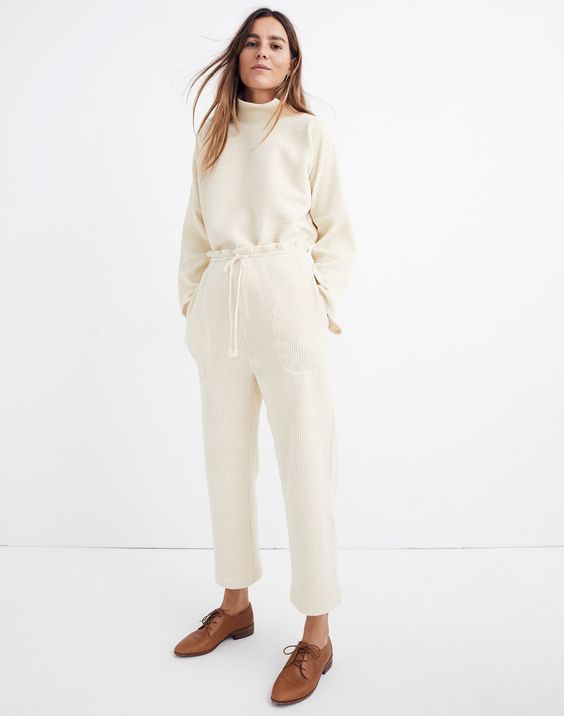 Sumado a estas nuevas tipologías que en general se caracterizan por ser siluetas más relajadas y fluidas, el consumidor post-pandemia comienza a valorar cada vez más la calidad y las texturas de las prendas que usa, ya que van en contacto directo con el cuerpo. El algodón pima y la lana ocupan el puesto número uno entre los elegidos. Este tipo de textiles naturales ofrece mayor suavidad, flexibilidad y confort a la hora de enfrentar largas y monótonas jornadas.