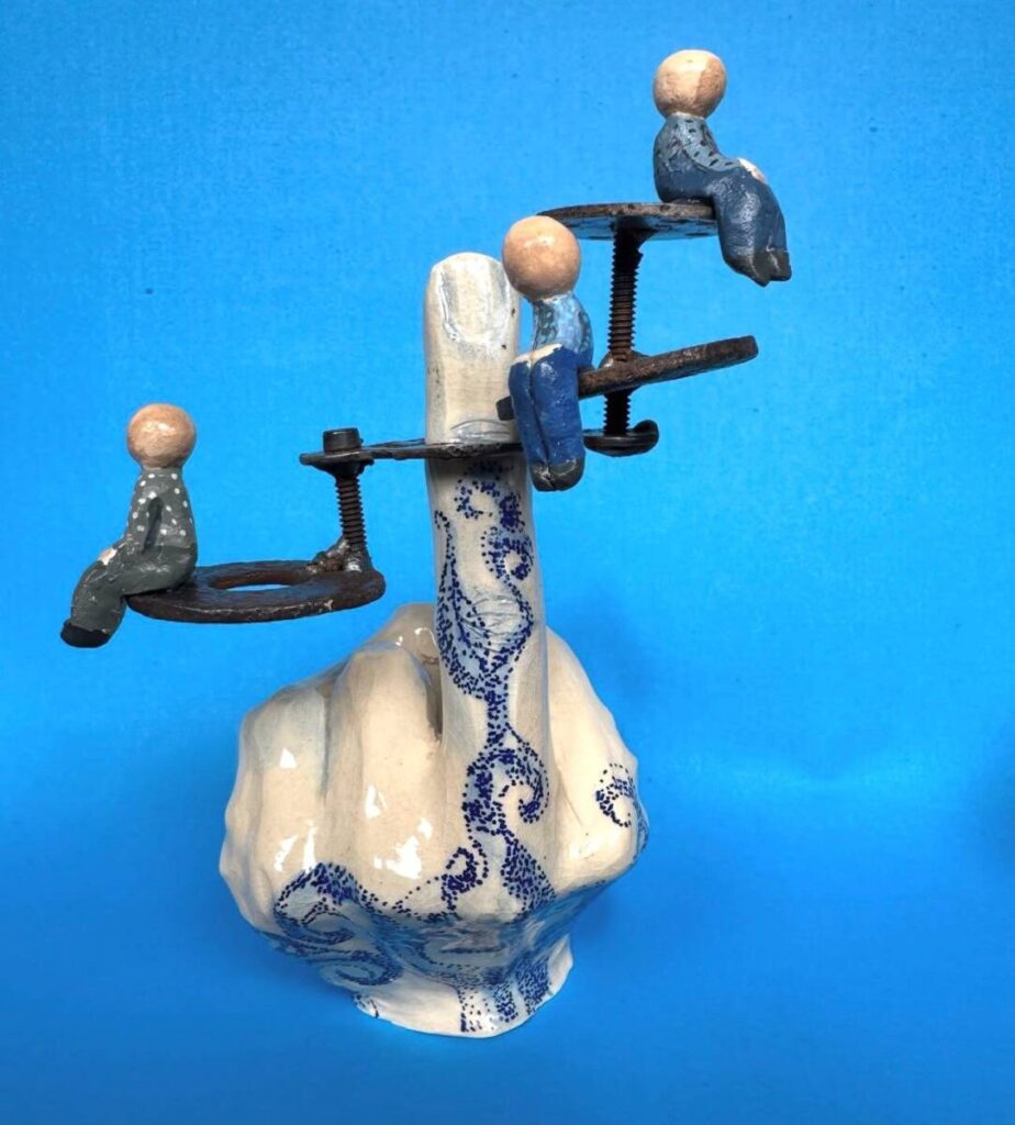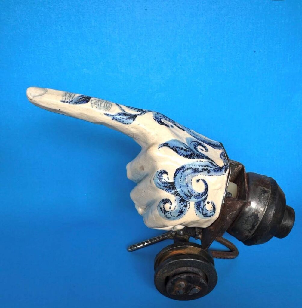 Abud tiene una particularidad que atraviesa toda la obra: es médica y cirujana plástica. Conoce el cuerpo desde la piel, la carne y la cicatriz. Pero en el arte lo fragmenta, lo reconfigura y lo convierte en metáfora. Sus piezas hablan de cómo habitamos hoy nuestro cuerpo en una era mecánica, tecnológica, acelerada. Y lo hacen sin solemnidad: hay humor, hay juego, hay humanidad.
