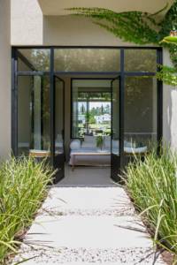 Sobre la obra, la arquitecta detalló: “El desafío fue darle vida a ese lugar muerto. Rellenamos con material e hicimos un contrapiso. El pasillo de entrada terminaba con un paño fijo, ahí cambiamos uno de la misma medida, pero de PVC corredizo negro que hace juego con todo el cerramiento. Además, agregamos otro paño fijo en la parte inferior para nivelar la altura porque estaba más bajo que el resto de la casa. También, sumamos una parrilla en el medio, con ventilaciones, siguiendo el tarquini de la casa y como detalle al piso le hicimos alisado de cemento y se usaron vidrios laminados”.